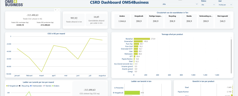 Samen met Datakracht ontsluiten we de data die in OMS4Business is vastgelegd in PowerBI. Power BI is een welbekende BI-tool (Business Intelligence tool) voor het visueel maken van data tbv het management en managers. Order informatie over hoeveelheden en omzetten worden mooi inzichtelijk gemaakt. Binnen afzienbare tijd zijn ook de CO2 rapportages inzichtelijk in deze omgeving.